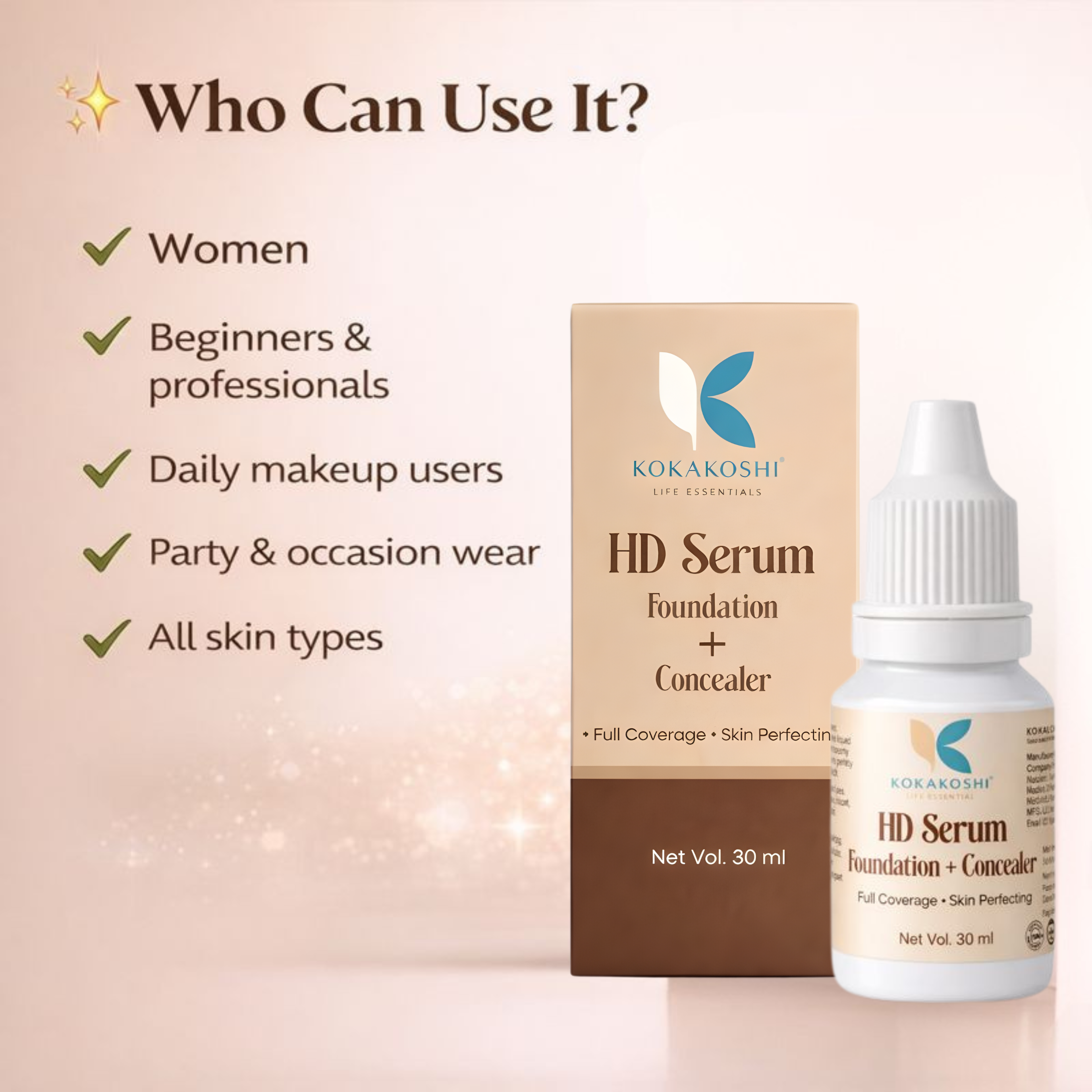 Experience flawless, high-definition beauty with KOKAKOSHI HD Serum Foundation + Concealer — a powerful 2-in-1 makeup essential designed to perfect your skin in one step.